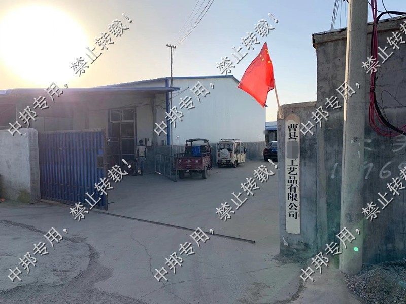 曹县XX工艺品有限公司2014年11月04日成立,位于山东省菏泽市曹县青荷街道,经营范围包括草、柳、编、木制工艺品加工、销售(依法须经批准的项目,经相关部门批准后方可开展经营活动)。