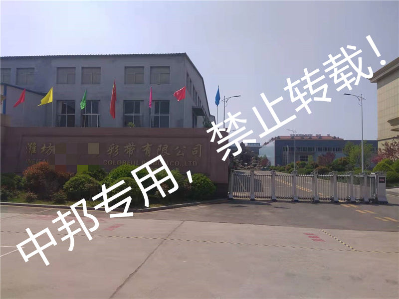潍坊XX彩带有限公司始建于2002年.公司占地5万平方米,其中建筑面积3万平方米. 拥有600余台 “缪勒”牌各式先进的织机,20条全自动染色线,200台包装机.公司员工达到500人.每年可生产各类丝带3000吨以上,年产值超过2亿元人民币