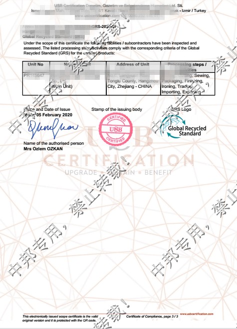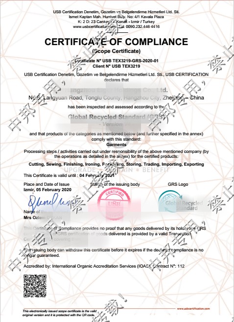 经过我司专业辅导老师、相关业务以及工厂相关验厂负责人的共同努力,该厂于2020年1月顺利通过GRS认证,在此表示祝贺。