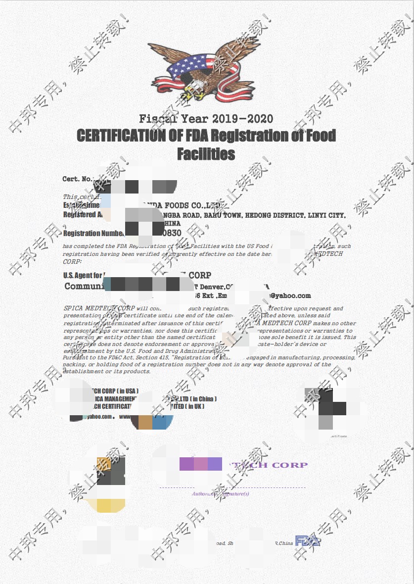 恭贺临沂XX食品有限公司2019年12月顺利通过FDA认证!