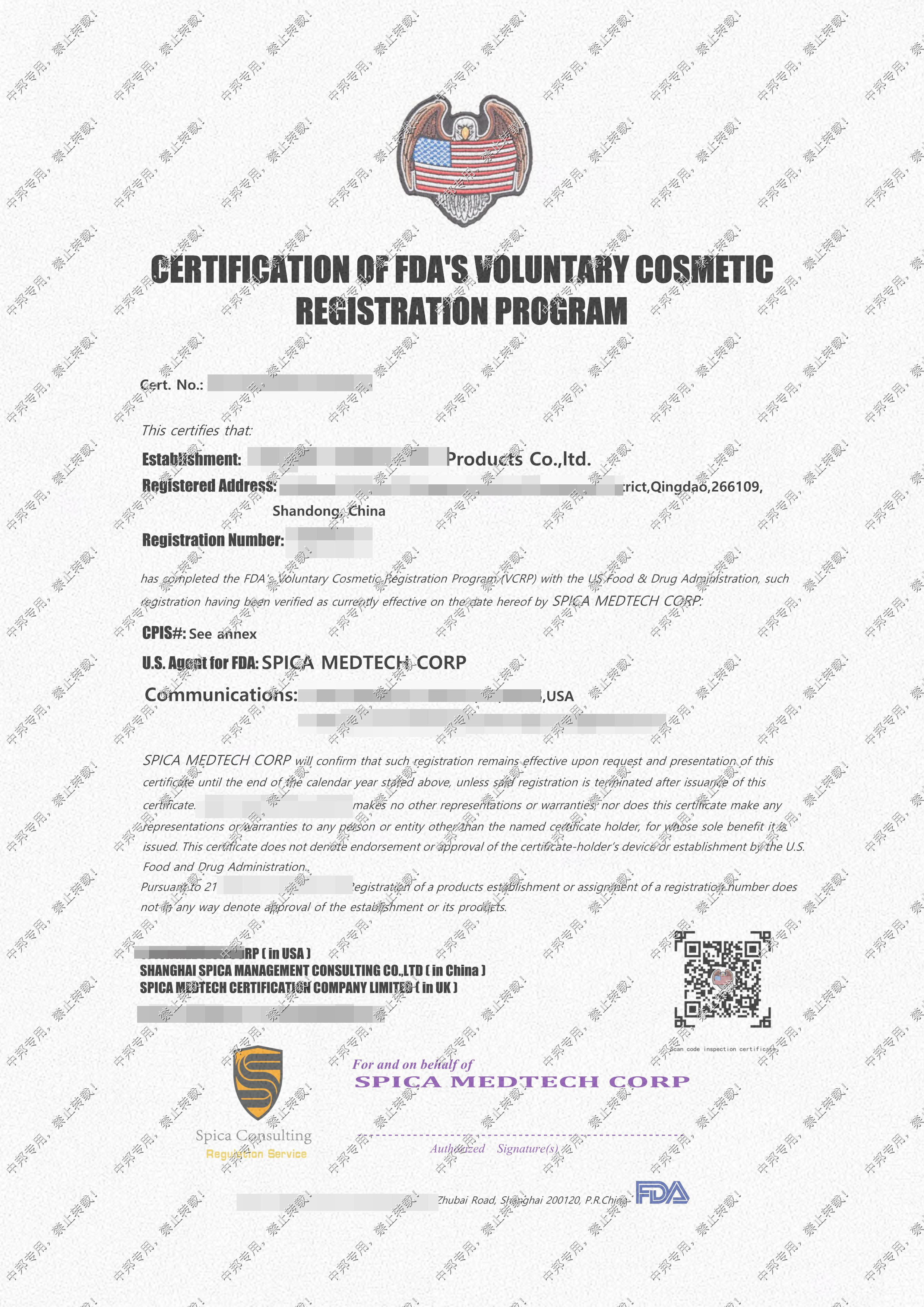 您当前的位置:首页 > 成功案例 > 恭贺青岛XX制品有限责任公司2019年11月顺利通过FDA认证!