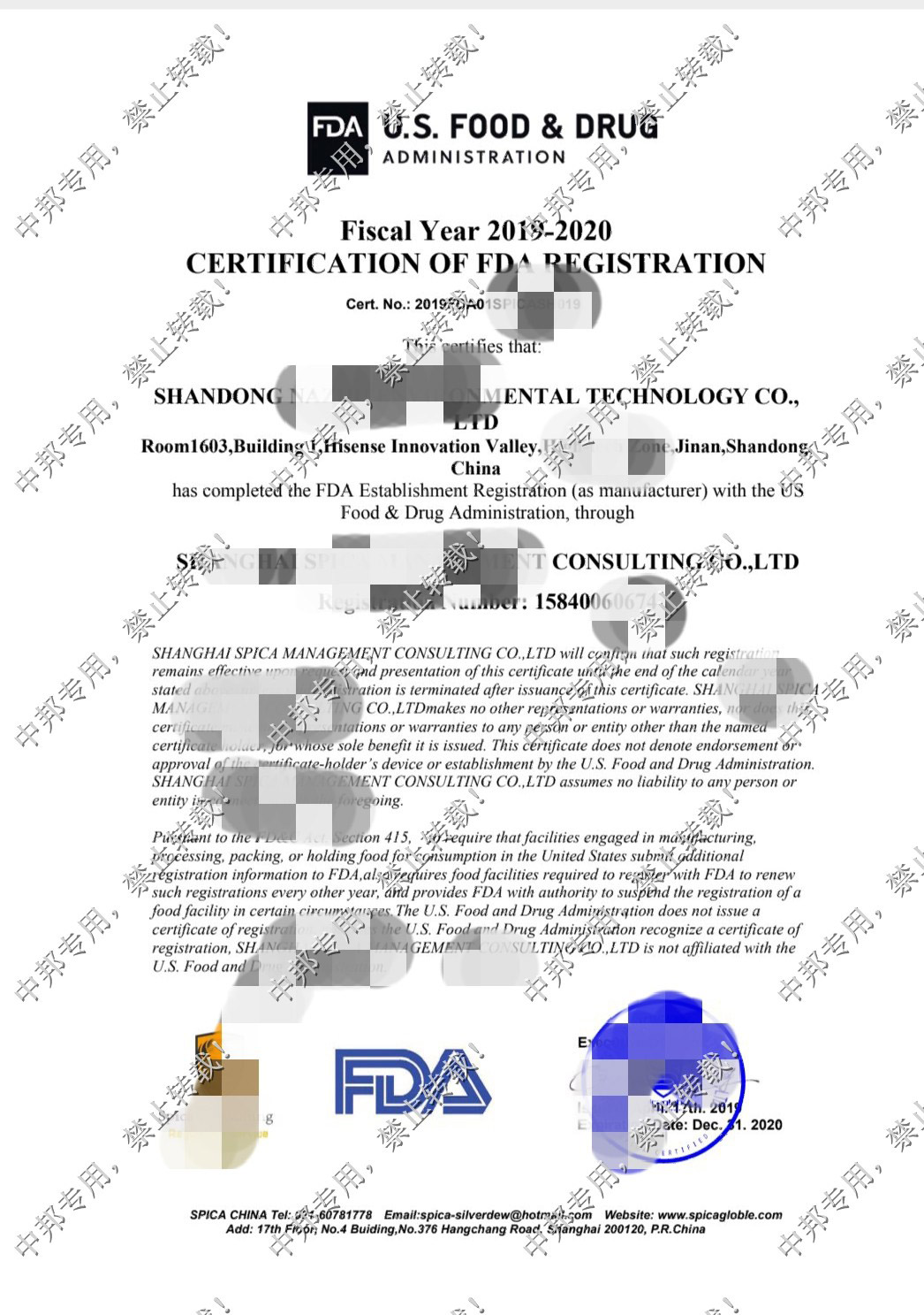 经过我司专业辅导老师、相关业务以及工厂相关验厂负责人的共同努力,该厂于2019年4月顺利通过FDA认证,在此表示祝贺。