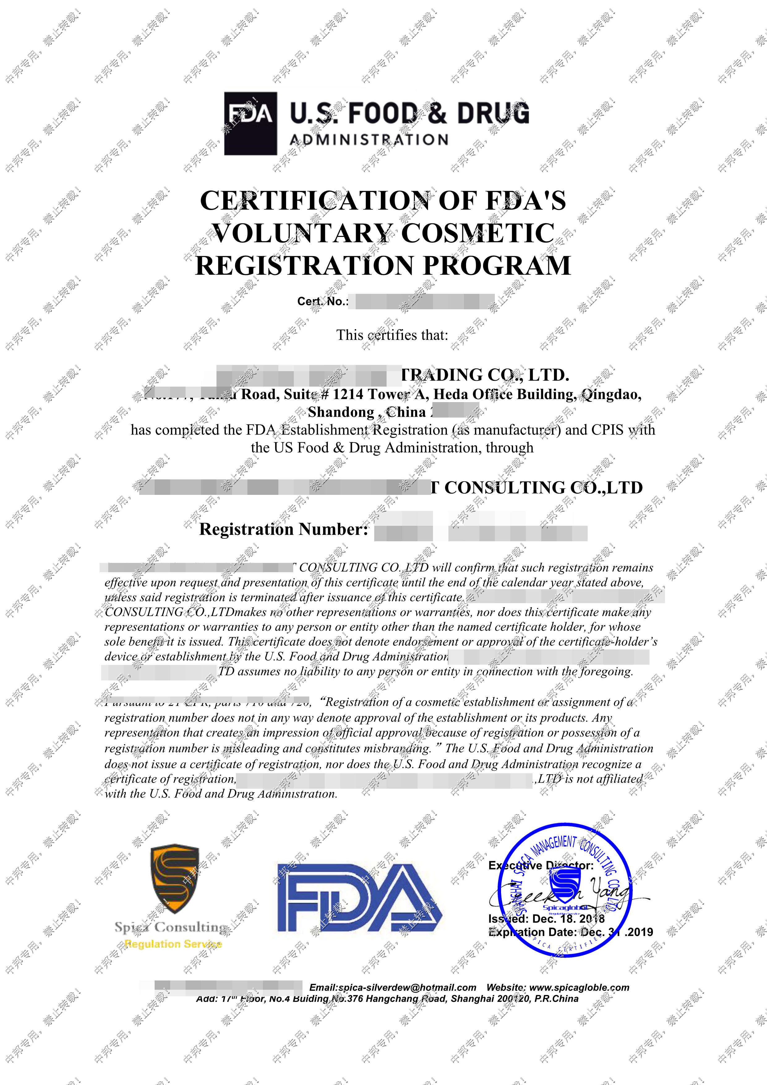 经过我司专业辅导老师、相关业务以及工厂相关验厂负责人的共同努力,该厂于2019年4月顺利通过FDA认证,在此表示祝贺。