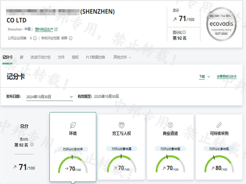 在我司专业咨询师、精英业务以及尊贵客户的共同努力下,客户顺利通过EcoVadis验厂 获得银牌一枚!,在此表示祝贺!!!每一次合作,中邦人都会全力以赴,不仅仅是审核通过,更注重客户感受,客户每一次的真诚回馈都会令我们感动,真诚期待我们下一次的合作。