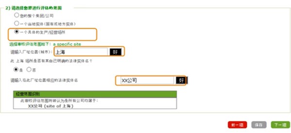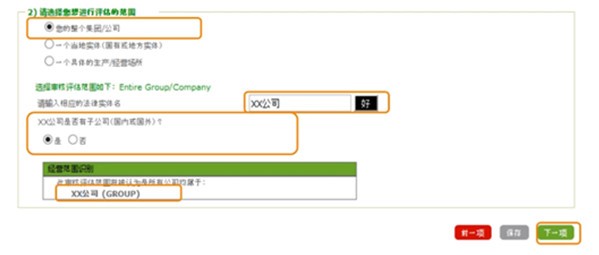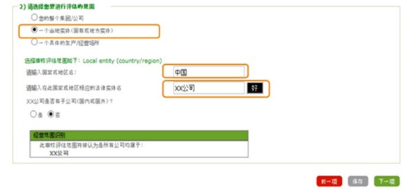 5. 根据公司进行评估的范围选择其中一项,并填完对应页面内的信息: