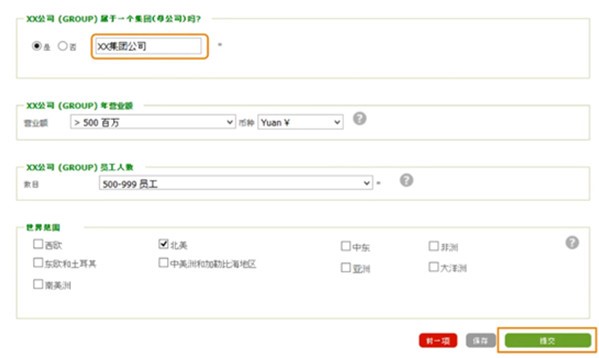 定义贵公司的商业活动,规模,所属行业,所在国家等等。这些信息将用于创建符合贵公司情况的企业社会责任问卷,因此十分重要。