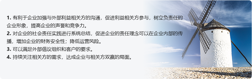 CSR(Corporate SocialResponsibility)报告又称企业社会责任报告、可持续发展报告或永续发展报告,是企业披露其社会责任履行的战略方针、具体行动及愿景规划等非财务绩效的重要载体;CSR报告针对利益相关方对经济、环境、社会三方面的信息要求做出相应回应,是企业与利益相关方沟通的重要平台。是企业将其履行社会责任的理念、战略、方法,及其经营活动在经济、社会、环境等维度产生的影响定期向利益相关方进行披露的沟通方式。企业通过编制和发布企业社会责任报告,可以系统梳理、分析面临各种责任风险,推动企业内部管理提升和改进。