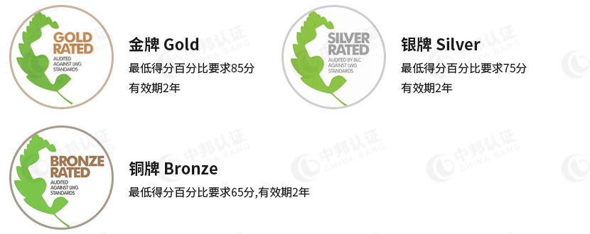 各品牌承诺在入会后3年内将皮革供应链的25%加入LWG会员。在入会后6年内将50%加入LWG会员。要求品牌成员公示他们购买的皮革数量、原材料类型和通过LWG认证供应商采购的材料比例。LWG认证有效期2年分为金银铜三个等级。