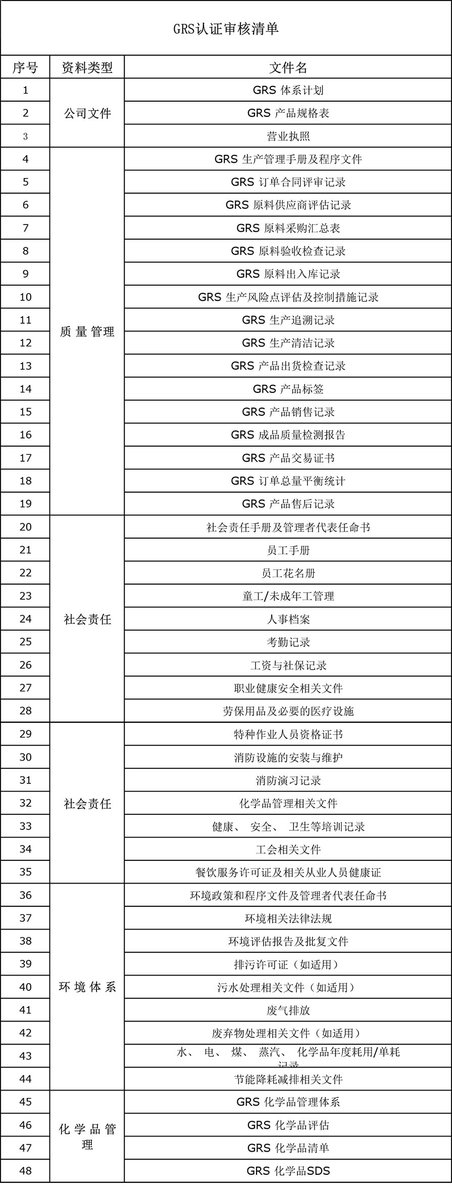 GRS认证审核清单
